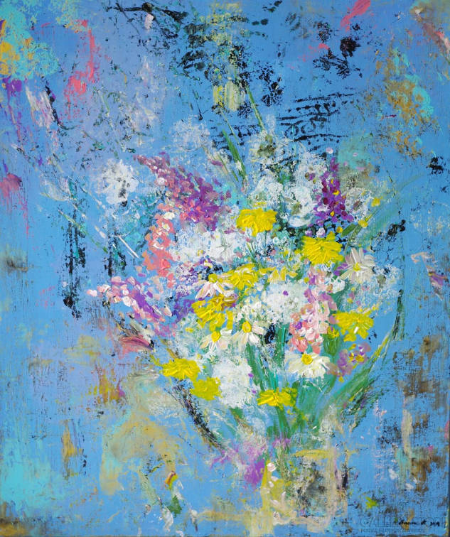 „Czarne kwiaty” Marcina Paproty to olej, który pasować będzie przede wszystkim do nowoczesnych, oszczędnych salonów. „Trzy kwiaty” Krzysztofa Tracza można skomponować z patchworkowymi tekstyliami w klimacie boho. Z kolei praca Agnieszki Mrowcy „Polne kwiaty” to niemal obraz abstrakcja, efektownie prezentujący się w sypialni pełnej zwiewnych tkanin i delikatnych kolorów.