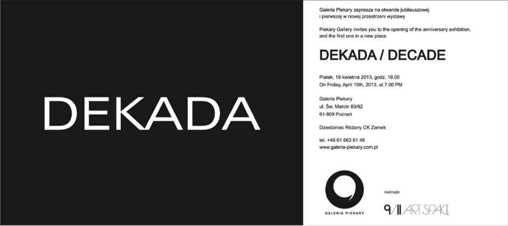 Galeria Piekary w Poznaniu zaprasza na otwarcie jubileuszowej i pierwszej w nowej przestrzeni wystawy Dekada